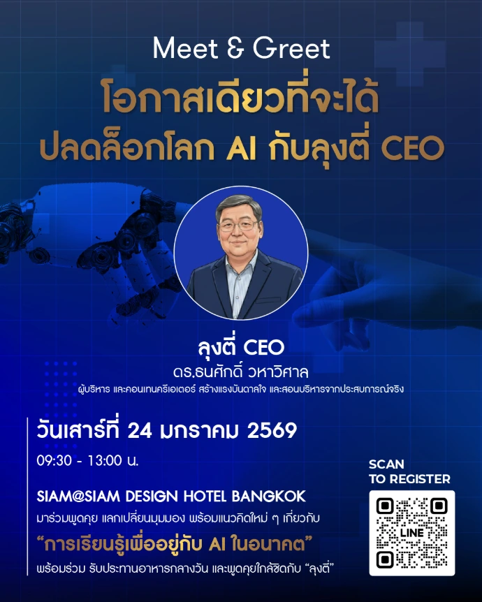 ⏳ โค้งสุดท้าย! เหลือเวลาอีกเพียง 3 วันเท่านั้น กับโอกาสที่จะได้ร่วมพูดคุยและกระทบไหล่กับ "ลุงตี่ CEO" ดร.ธนศักดิ์ วหาวิศาล แบบใกล้ชิด!